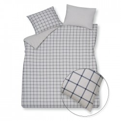 The Flannel Dundee duvet cover set in blue ink features a classic check pattern in shades of blue on grey melange flannel. The reverse side is plain. The duvet cover is made from 100% cotton flannel, which is soft and warm thanks to the slightly roughened fibres. This makes it feel thick and comfortable, while absorbing moisture and remaining breathable. An attractive and practical choice for the colder months.