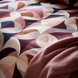 The Scarlet duvet cover set in multi is a retro-inspired design with organic shapes in pink, blue and brown. Only the front is printed; the back is plain. The cotton sateen feels supple and comes with an elegant Oxford pillowcase. This 100% cotton sateen duvet cover offers a luxurious and comfortable sleeping experience thanks to its soft, supple texture and breathable properties. The special weave of fine cotton yarn creates a smooth surface and slight sheen. This makes it feel wonderfully soft against the skin, ensuring a comfortable night's sleep. What's more, cotton naturally regulates body temperature and absorbs moisture, resulting in a pleasant sleeping environment and a good night's sleep.