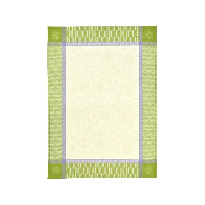 Delicate cream-coloured flowers in the centre surrounded by a blue and green border. A subtle, elegant eye-catcher for your home. The SERAPHIN terry towel is also available to match this series. The tailored jacquard pattern made of cotton is easy to care for and can be enjoyed all year round.