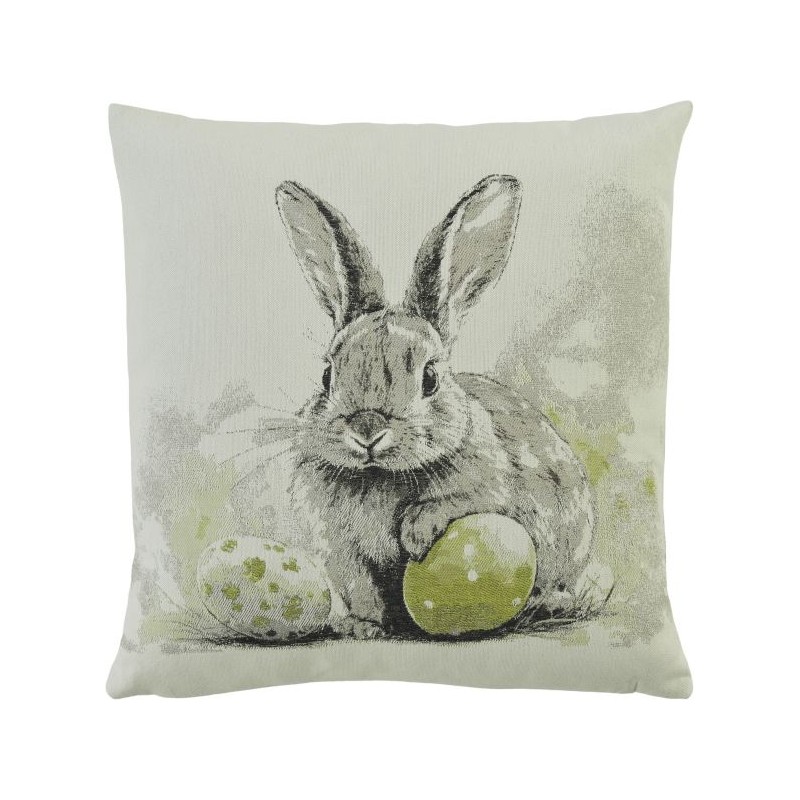 Coussin avec un lapin et des œufs en tissu jacquard avec des accents de couleur, pas seulement pour Pâques