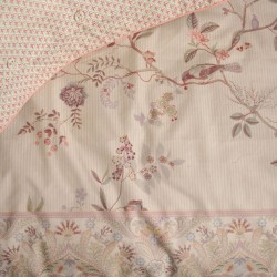 Enrichissez votre chambre à coucher avec la housse de couette Amor de Dios sable. La couverture, avec ses élégantes branches florales, ses fleurs de fantaisie, ses baies et ses feuilles, donne une impression de luxe et de richesse. L''imprimé éventail détaillé au bas de la couverture, composé de formes cachemire, ajoute une variante amusante. Retournez la couverture et vous y découvrirez un imprimé à carreaux stylisés au dos.