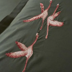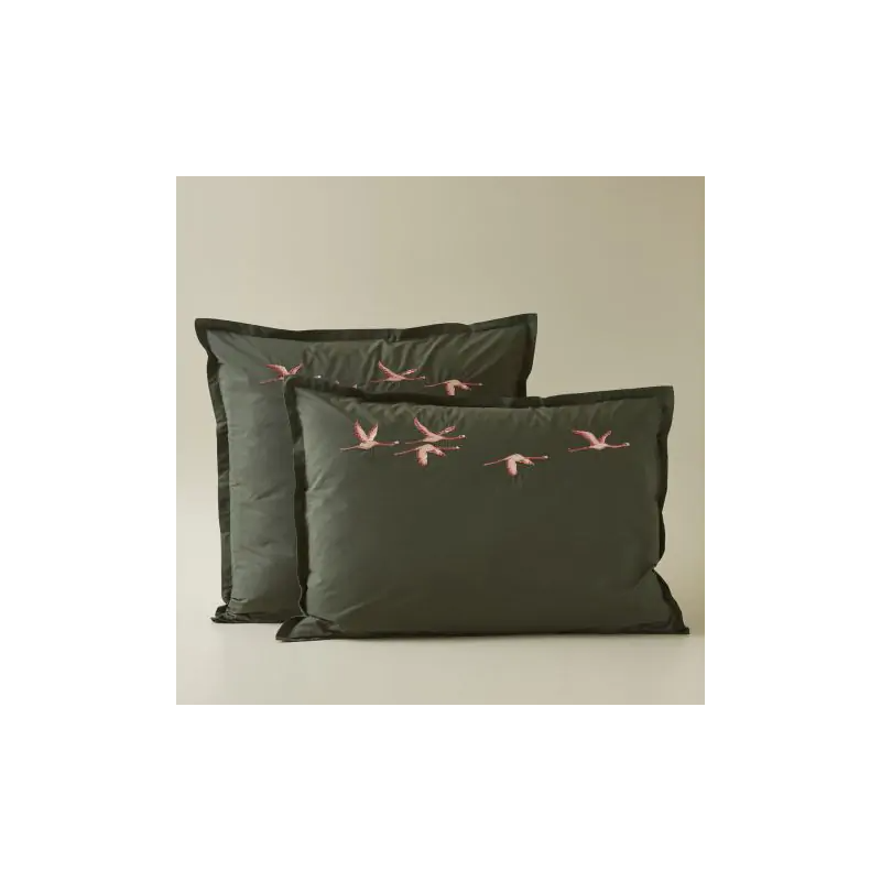 Ceux de cette taie d'oreiller sont brodés sur une élégante percale de coton couleur kaki qui les met joliment en valeur.