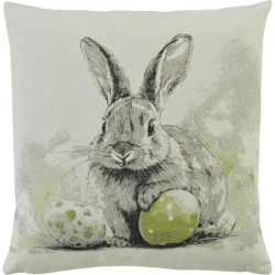 Kussen met een konijn en eieren van jacquardstof met kleuraccenten, niet alleen leuk voor Pasen